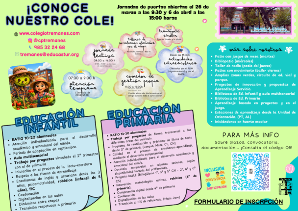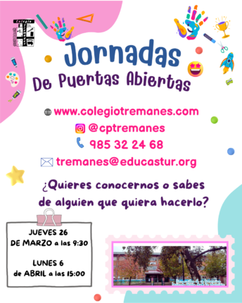 Estimadas familias, Desde el Colegio Tremañes nos complace invitaros a nuestra Jornada de Puertas Abiertas, una excelente oportunidad para conocer nuestras instalaciones, descubrir nuestro proyecto educativo y poner cara al equipo que acompañará a vuestros hijos e hijas en su aprendizaje 💙📚 🗓 Fechas disponibles:🔹 26 de marzo a las 9:30h🔹 6 de abril a […]